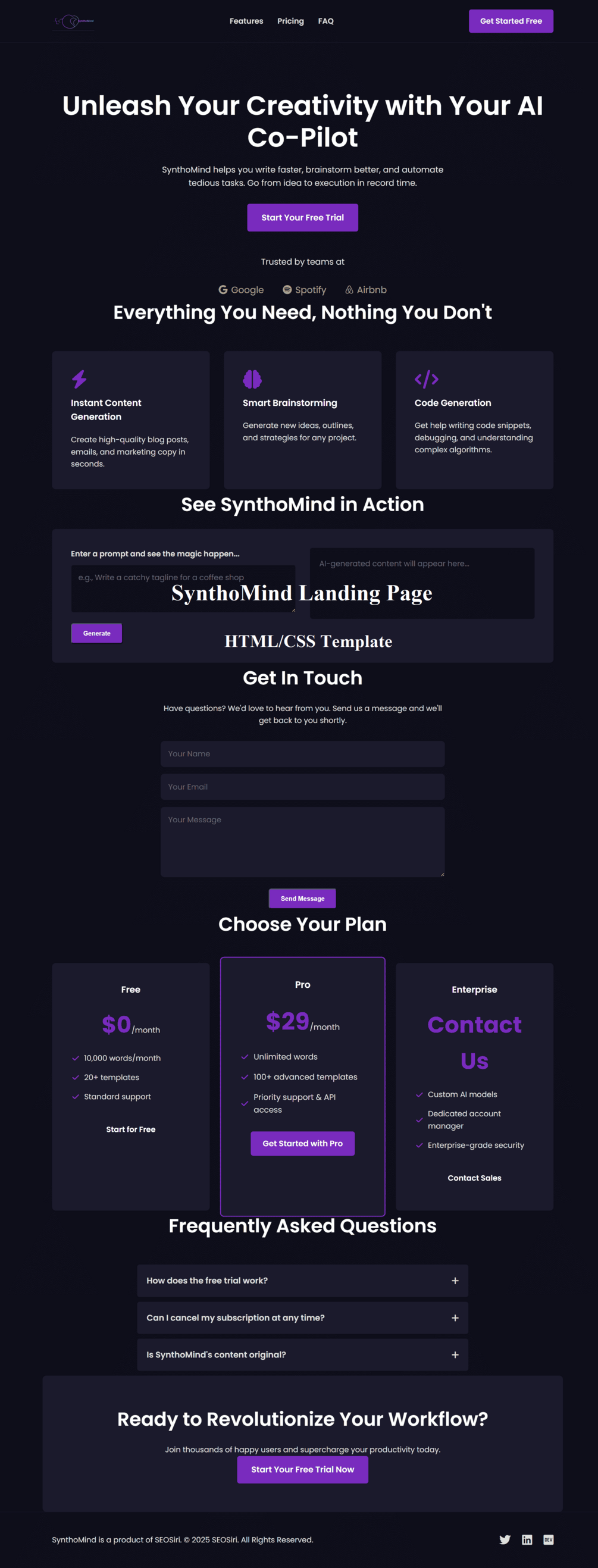 SynthoMind - Premium AI SaaS Landing Page Template (HTML/CSS)